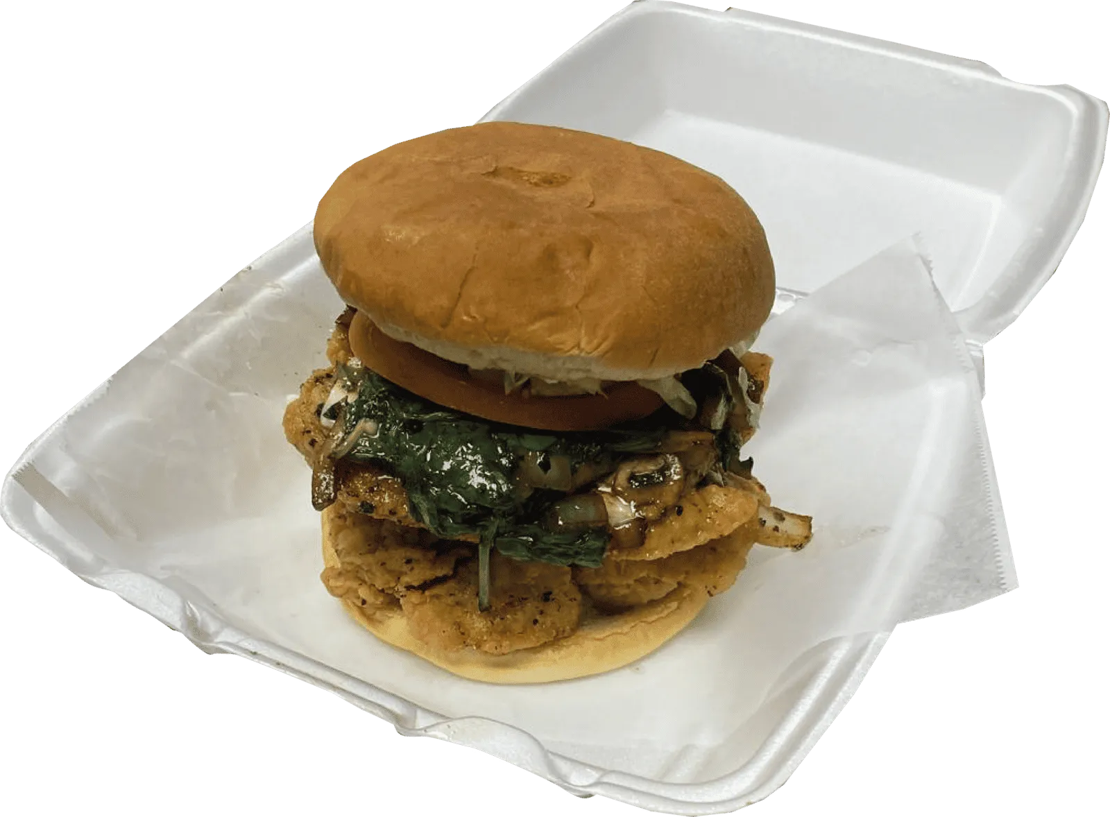 Mayo, Swiss Cheese, Grilled Mushrooms, Grilled Spinach, Grilled Onions Lettuce, Tomato, And Pickles